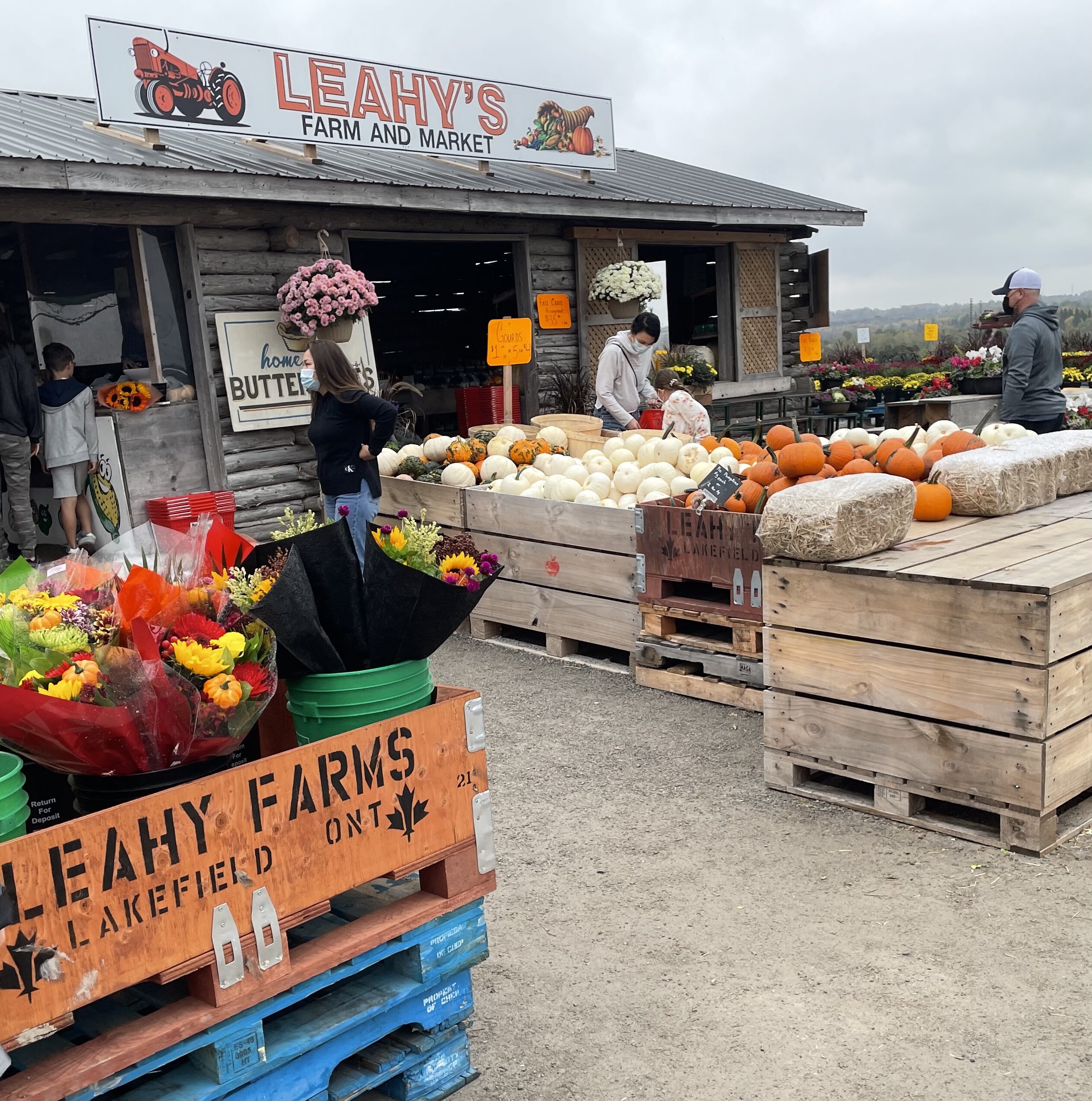 Stop at Leahy's Farm and Market on Highway 28. Fresh produce, seasonal stuff, dog-friendly, kids' activities. It's the kind of stop that eats 45 minutes without you noticing.